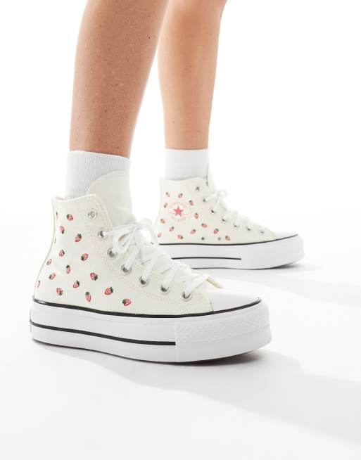Converse - Chuck Taylor All Star Lift Hi - Baskets montantes à plateforme avec broderies fraise - Crème
