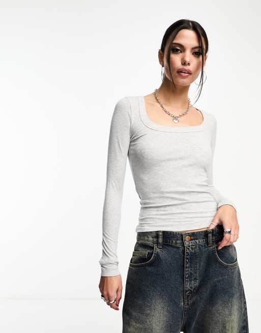 Cotton On - Top à manches longues à encolure dégagée - Gris