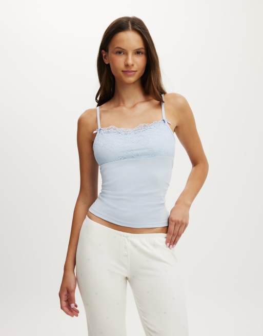 Cotton On - Dreamy - Caraco doux avec empiècement superposé en dentelle - Bleu