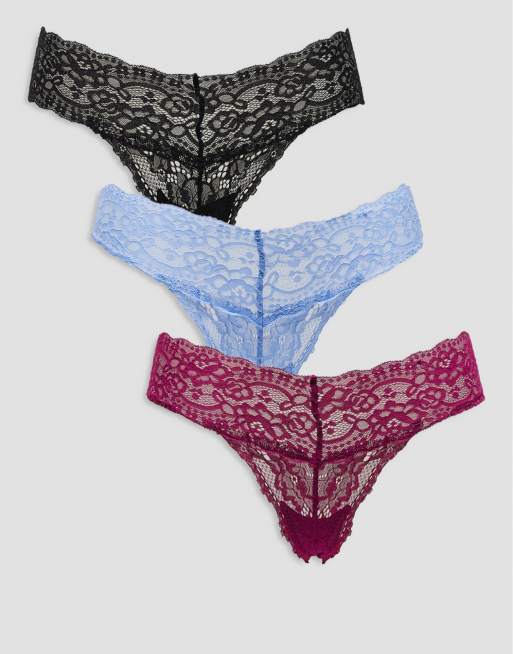Cotton On - Everyday - Lot de 3 strings en dentelle - Baie, bleu, noir