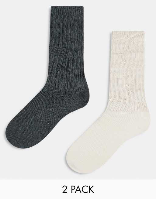 Cotton On - Lot de 2 paires de chaussettes froissées style années 90 - Anthracite et écru