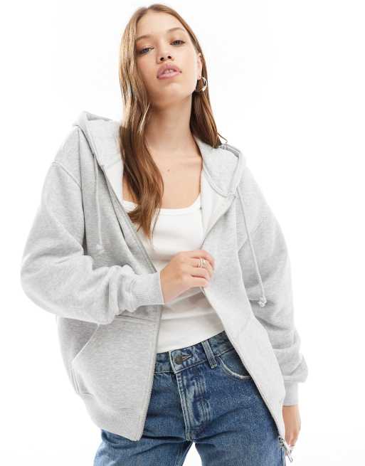 Cotton On - Sweat à capuche coupe carrée à fermeture éclair - Gris