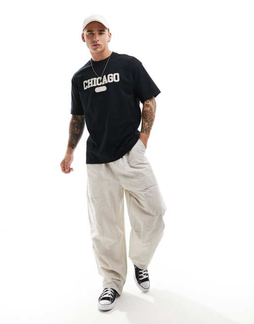 Cotton On - T-shirt oversize à imprimé Chicago - Noir