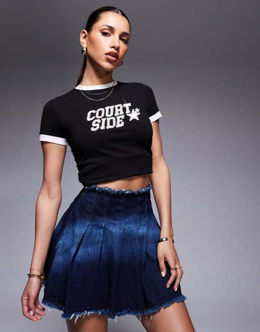 Courtside - Mini-jupe plissée en jean - Bleu brut