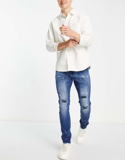 Criminal Damage - Jean effet fumée - Bleu moyen délavé