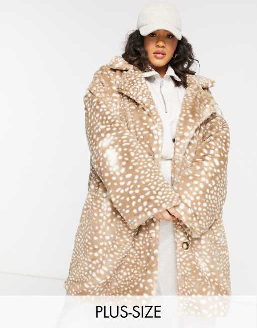 Daisy Street Plus - Manteau double boutonnage en fausse fourrure à imprimé animal