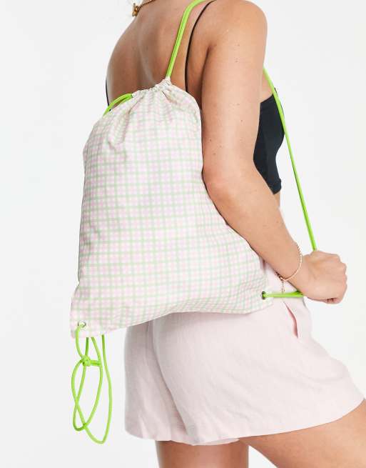 Daisy Street - Exclusivité - Sac à dos avec cordons de serrage et carreaux vichy - Rose et vert
