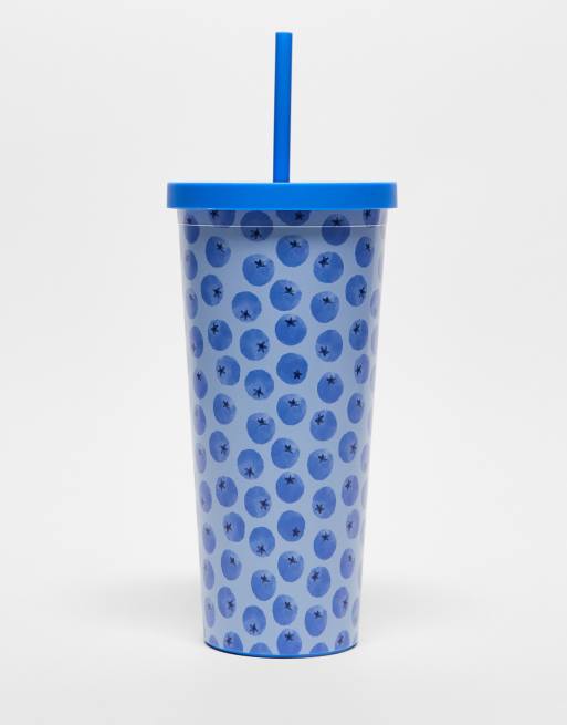 Daisy Street - Gobelet et paille réutilisables à motif myrtille - Bleu