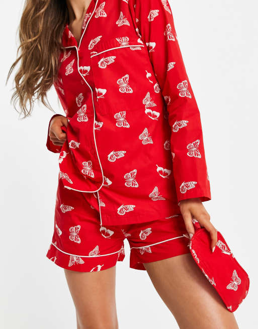 Daisy Street - Pyjama avec chemise à manches longues, short et masque de sommeil à imprimé papillons