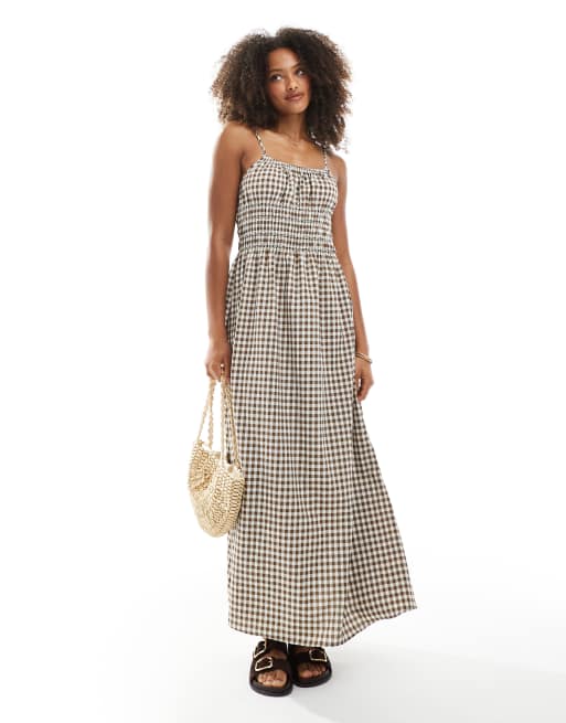 Daisy Street - Robe longue froncée contrastante - Marron à carreaux vichy