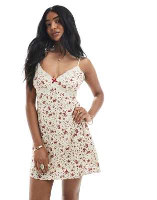 Daisy Street - Robe nuisette courte à petites fleurs rouges - Beige