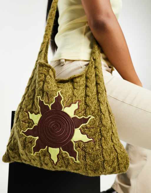 Daisy Street - Sac porté épaule en maille à détail soleil - Kaki