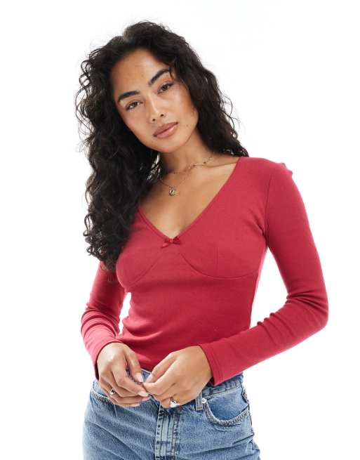 Daisy Street - Top manches longues en maille pointelle - Rouge