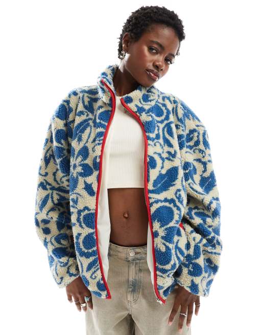 Daisy Street - Veste zippée à fleurs imitation peau de mouton