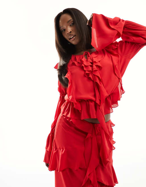 Daska - Blouse d'ensemble à volants et manches longues - Rouge