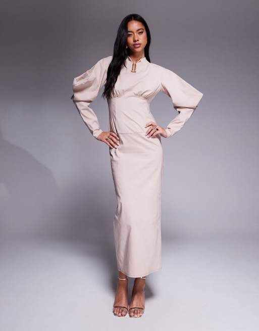 Daska - Robe longue à manches ballon structurées - Sable