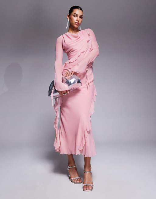 Daska - Robe volantée longue en mousseline - Blush clair