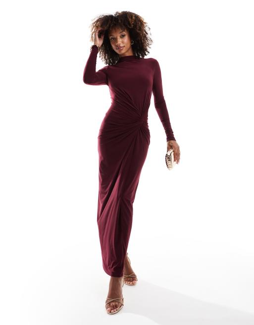 Exclusivité - Daska - Robe longue à col montant - Bordeaux