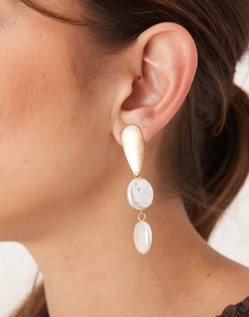 DesignB London - Boucles d'oreilles avec deux perles pendantes - Doré brossé