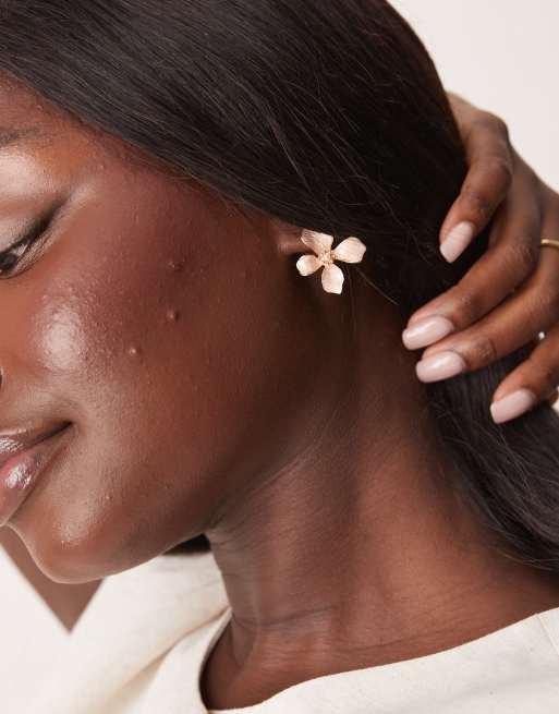 DesignB London - Boucles d'oreilles fleurs avec perle nacrée - Rose