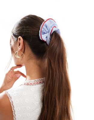 DesignB London - Chouchou oversize en coton à rayures - Rouge contrastant