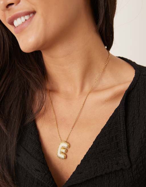 DesignB London - Collier avec initiale E bombée à ornements - Doré