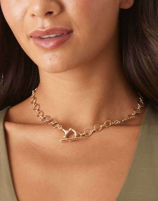 DesignB London - Collier chaîne lasso à barre en T - Doré