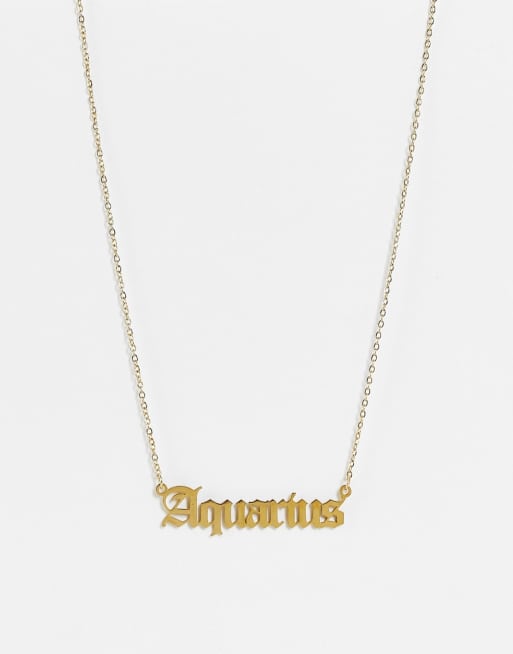 DesignB London - Collier en acier inoxydable à inscription Aquarius (signe du zodiaque Verseau) - Doré