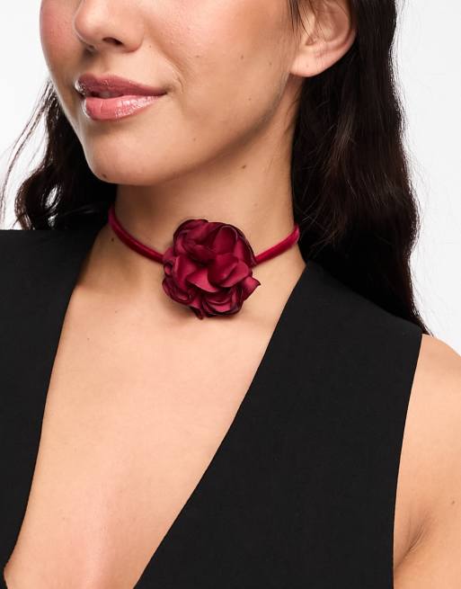 DesignB London - Collier ras du cou avec détail corsage - Rouge foncé