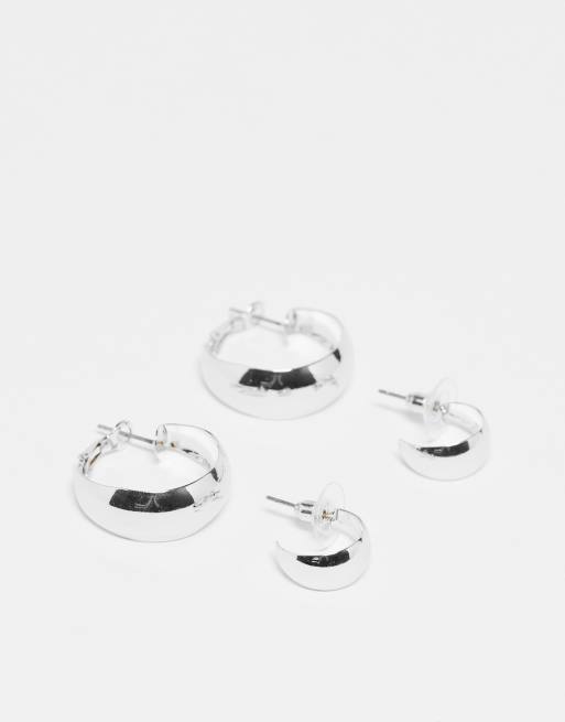 DesignB London - Lot de 2 paires de créoles épaisses - Argenté