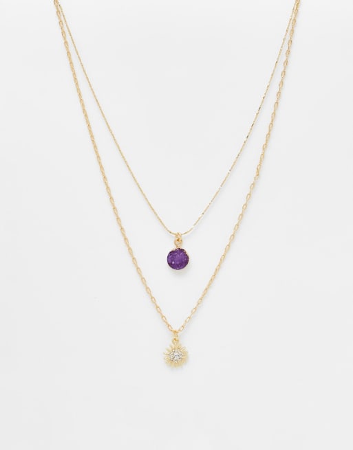 DesignB London - Lot de colliers avec pierre semi-précieuse - Doré/violet