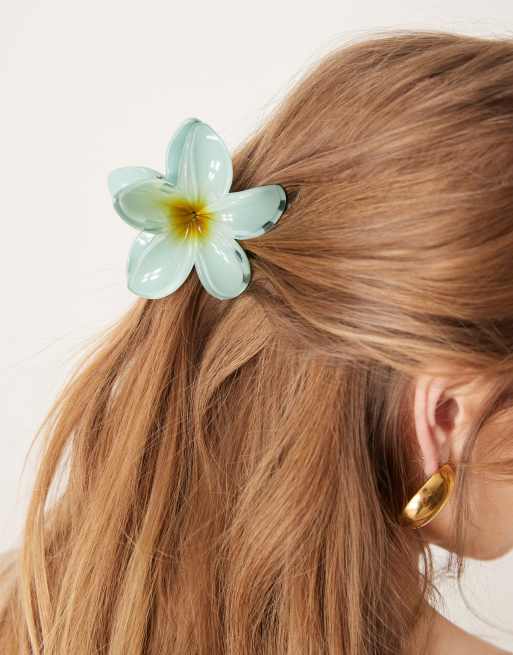 DesignB London - Pince à cheveux fleur hawaïenne - Bleu pâle