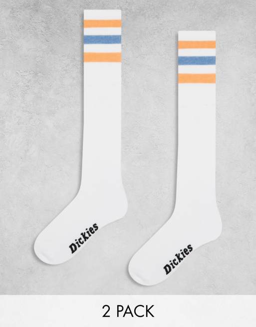 Dickies - Lutak - Chaussettes montantes à rayures orange et bleu - Blanc