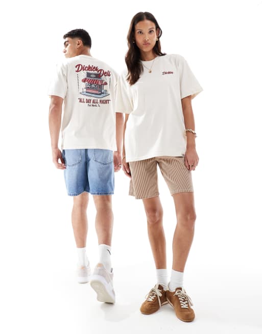 Exclusivité ASOS - Deli - T-shirt à imprimé graphique pizza au dos - Blanc cassé