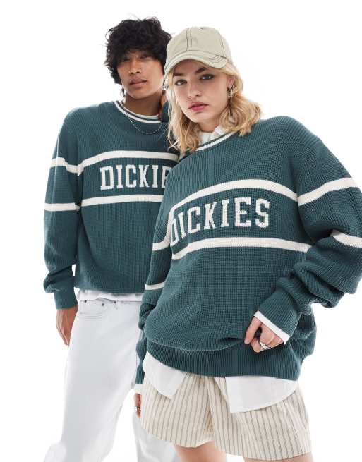 Exclusivité ASOS - Dickies - Melvern - Sweat en maille - Vert foncé/blanc cassé