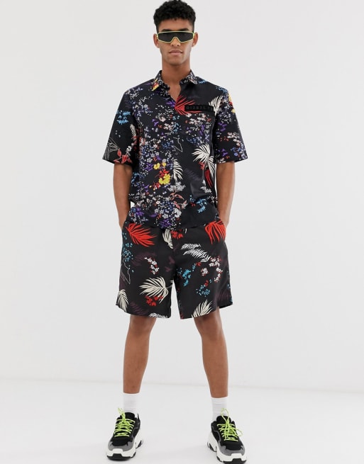 Diesel - Ensemble short et chemise à fleurs - Noir