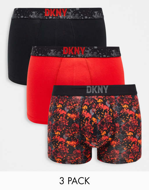 DKNY - Hobart - Lot de 3 boxers imprimés - Rouge/noir