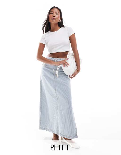 Don't Think Twice Petite - Jupe en jean longue à rayures et coutures contrastantes - Bleu