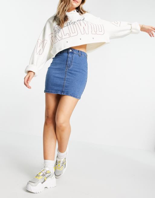 DTT - Clara - Jupe en jean stretch à taille haute - Bleu moyen
