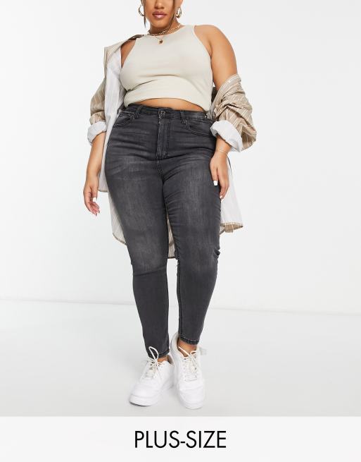 DTT Plus - Ellie - Jean skinny à taille haute - Noir délavé