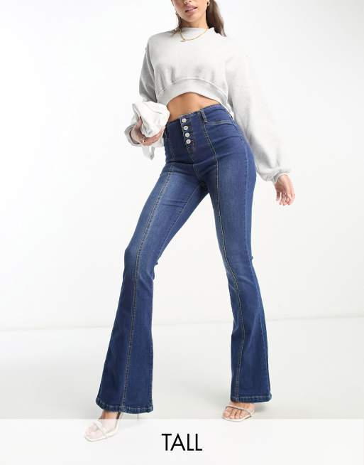 DTT Tall - Travis - Jean large boutonné sur le devant à taille haute - Bleu