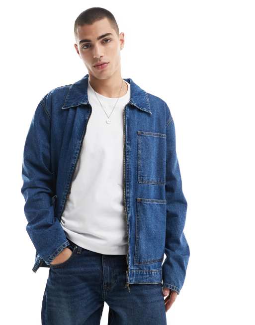DTT - Veste en jean courte avec col - Bleu moyen délavé