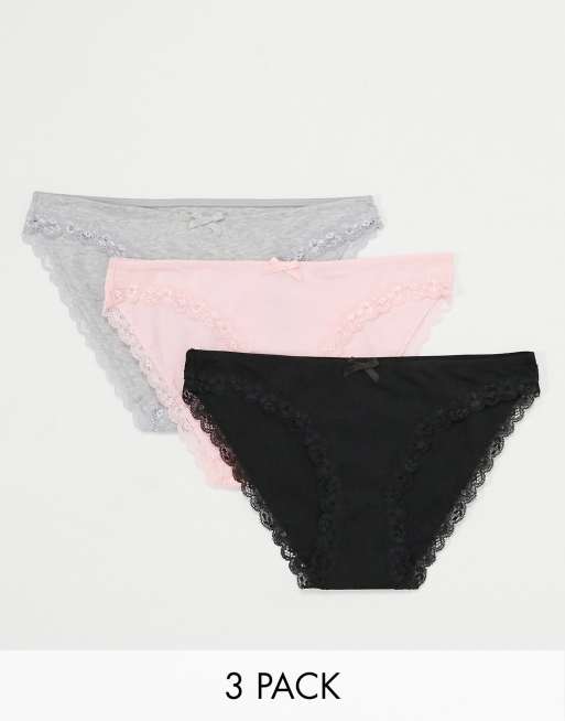 Dorina - Lianne - Lot de 3 culottes en coton bio - Noir, gris chiné et rose