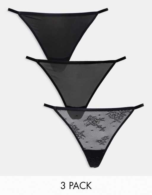 Dorina - Lot de 3 strings en dentelle et tulle - Noir