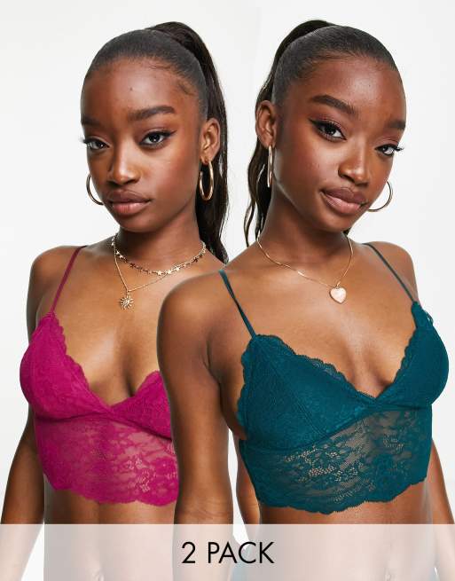 Dorina - Thrive - Lot de 2 soutiens-gorge bustiers légèrement rembourrés en dentelle - Vert et rouge