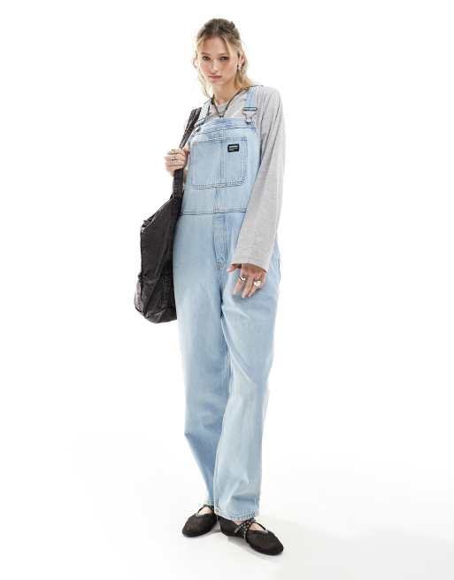 Dr Denim - Lydia - Salopette en jean décontractée large - Bleu clair délavé effet usé
