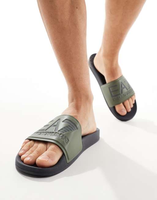 Armani - Claquettes à logo EA7 - Vert foncé