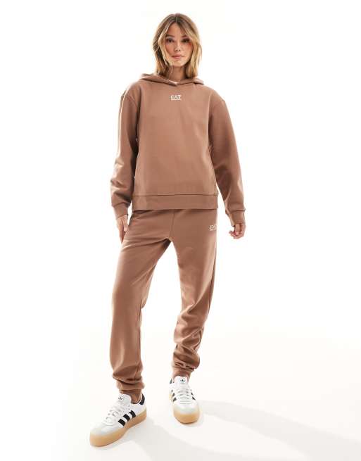 Armani EA7 - Ensemble pantalon de jogging et sweat à capuche à logo - Marron