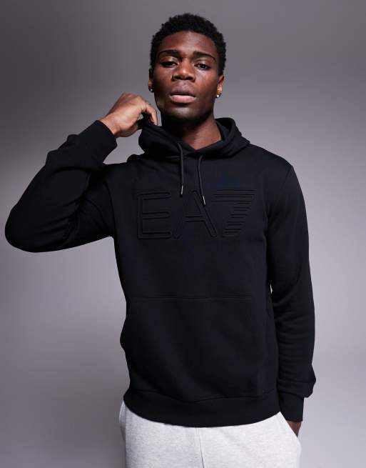 Armani - EA7 - Sweat à capuche avec logo estampé au centre - Noir