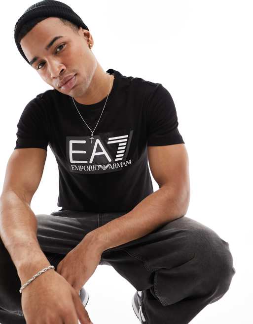 Armani - EA7 - T-shirt avec grand logo devant - Noir